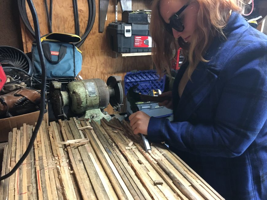 To dissassemble the pallets and break them down into boards I could us, I had to do something aout the nails. These nails are spiral shaped and glued, so trying to pull them out would have resulted in many, many broken boards and lots of hard work.