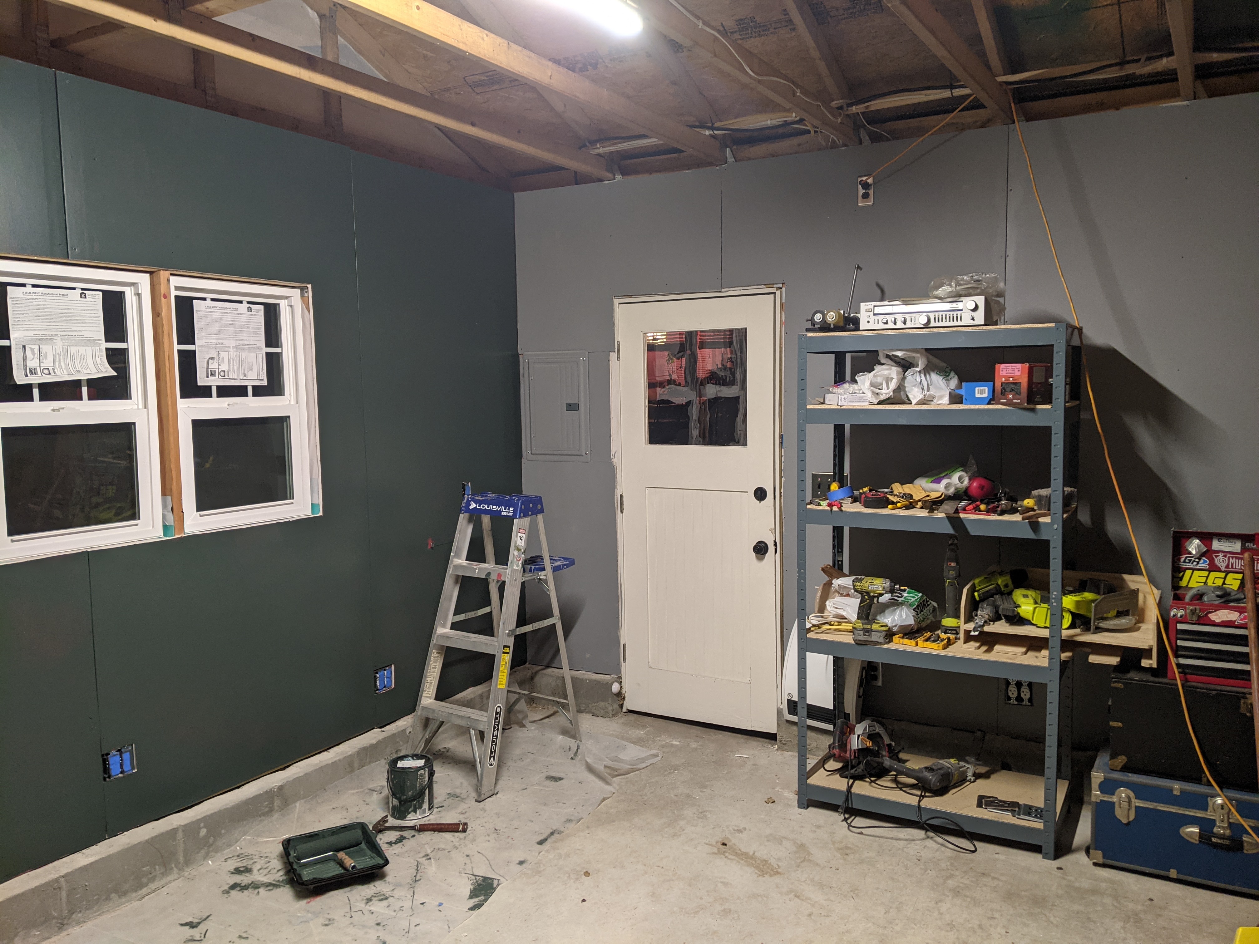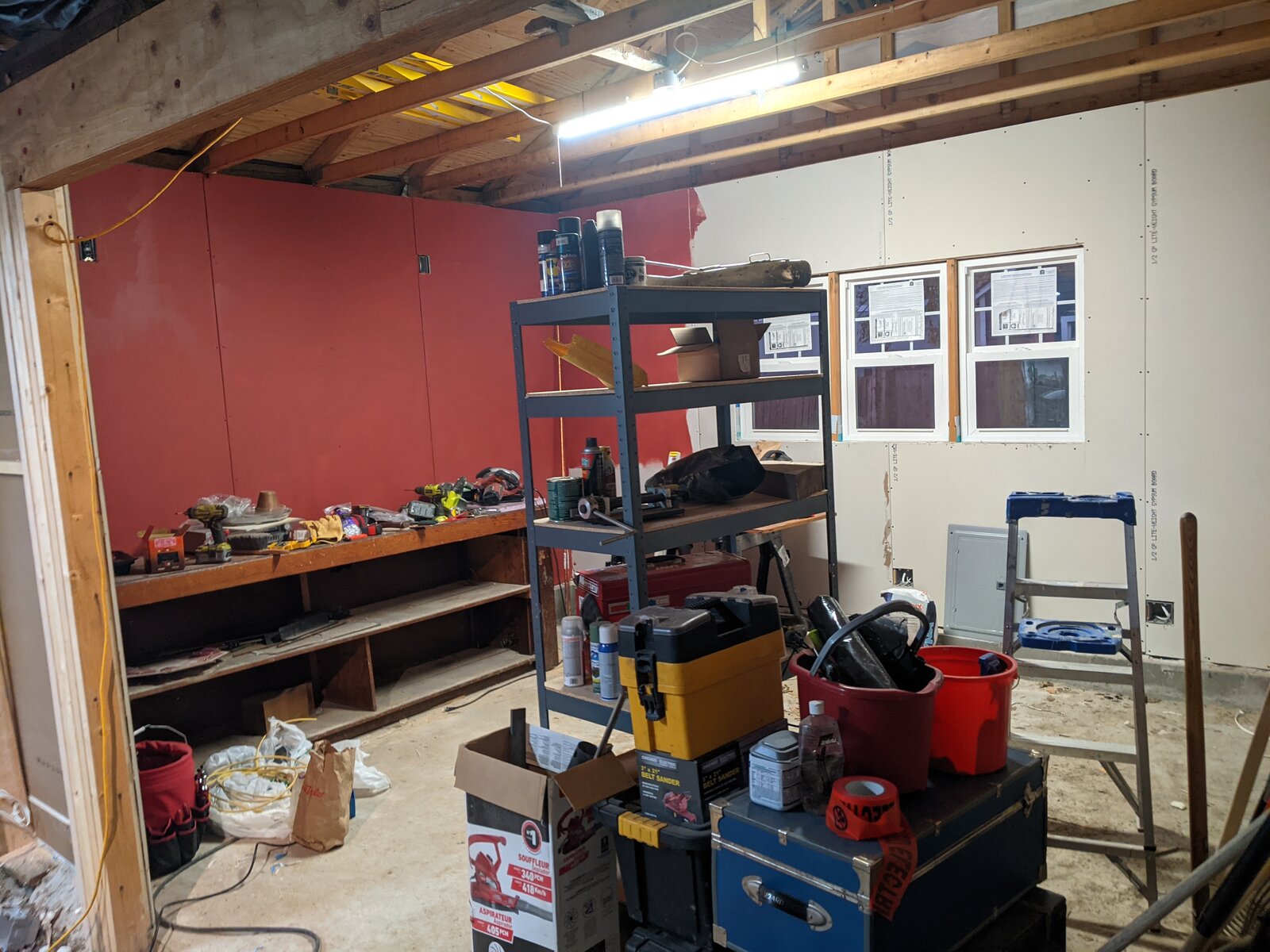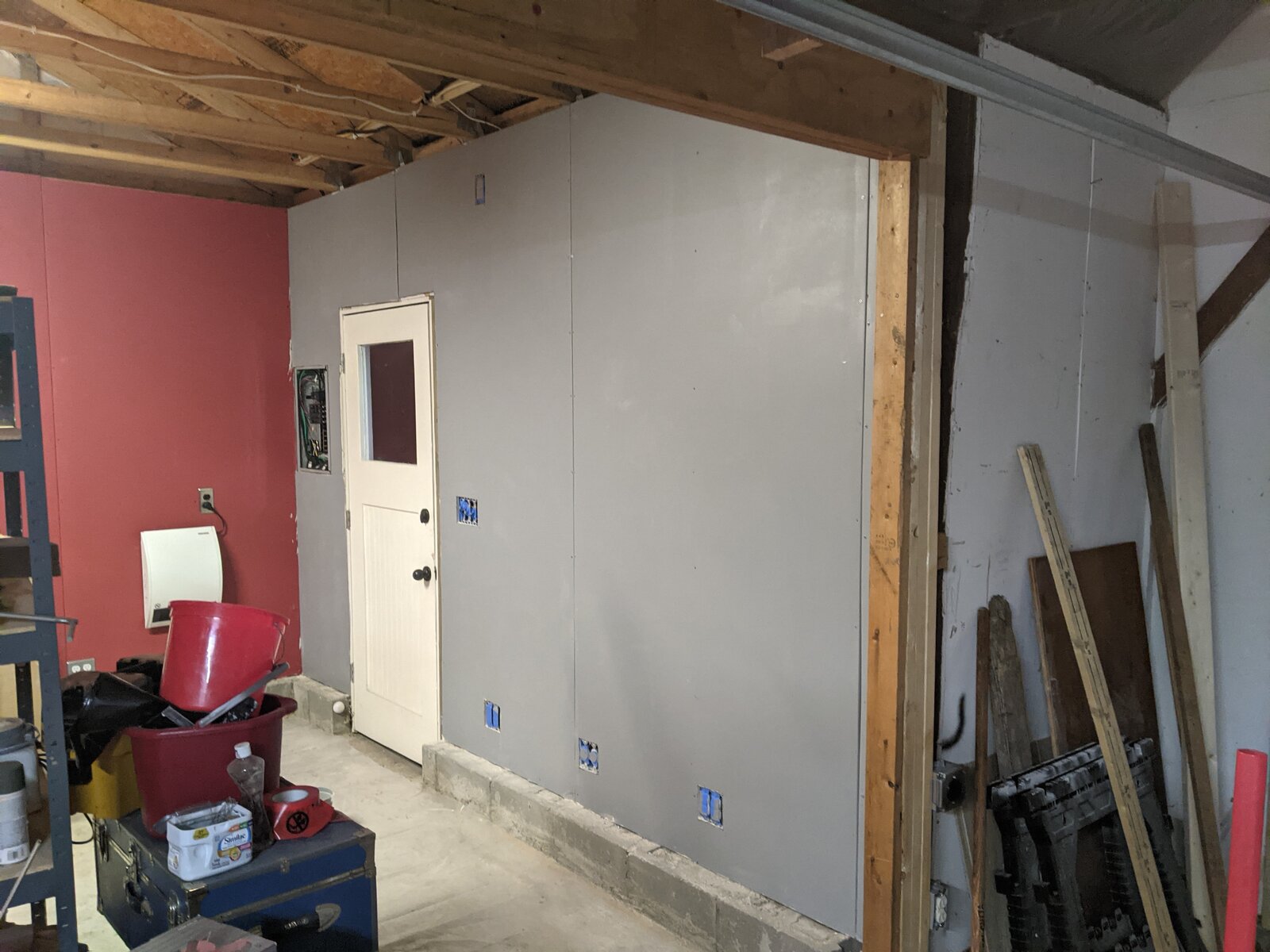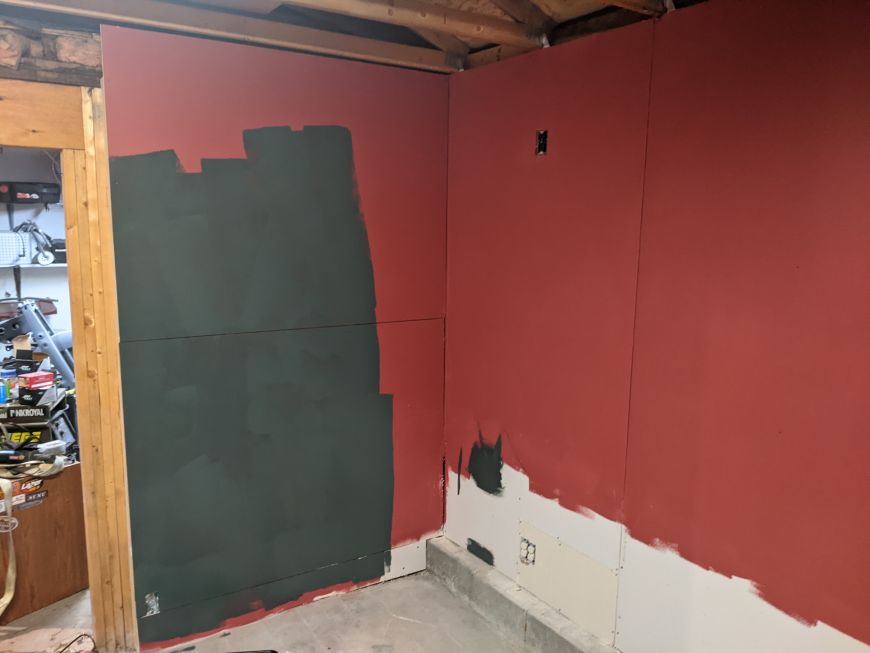 I started hanging some drywall and I couldn't wait to try out the red color of paint.