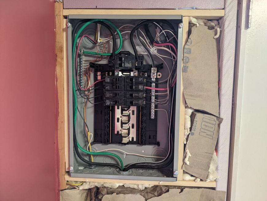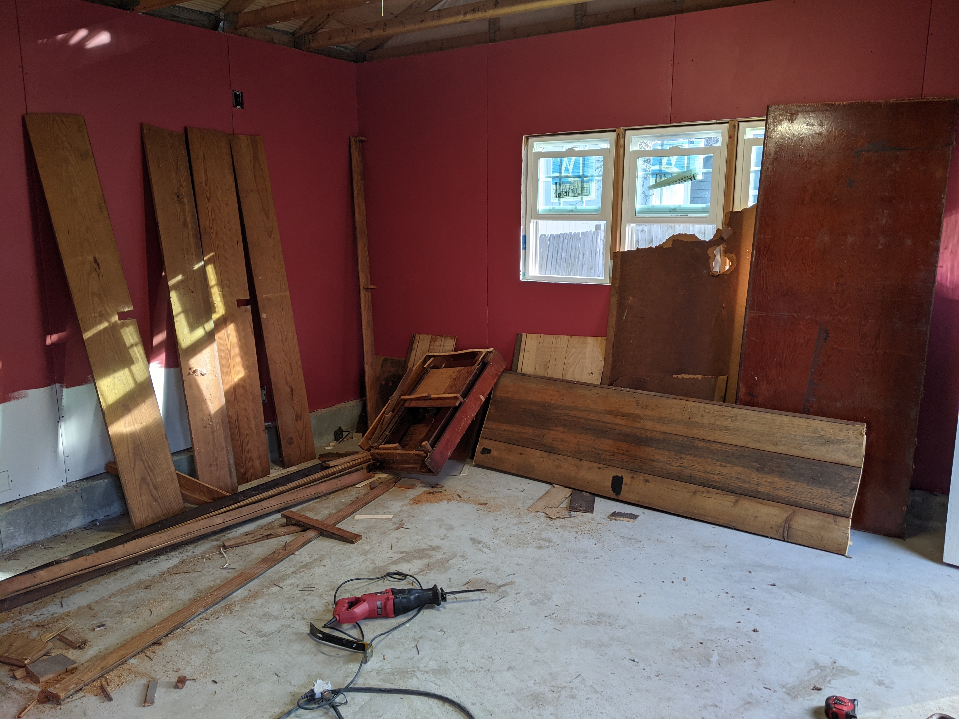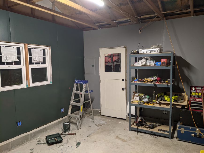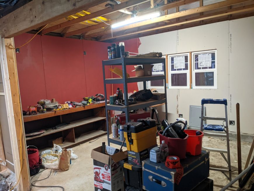 However my first challenge was just cleaning up the MESS that I had made during the construction process. (You can also see the R-14 insulation in the stud bays).