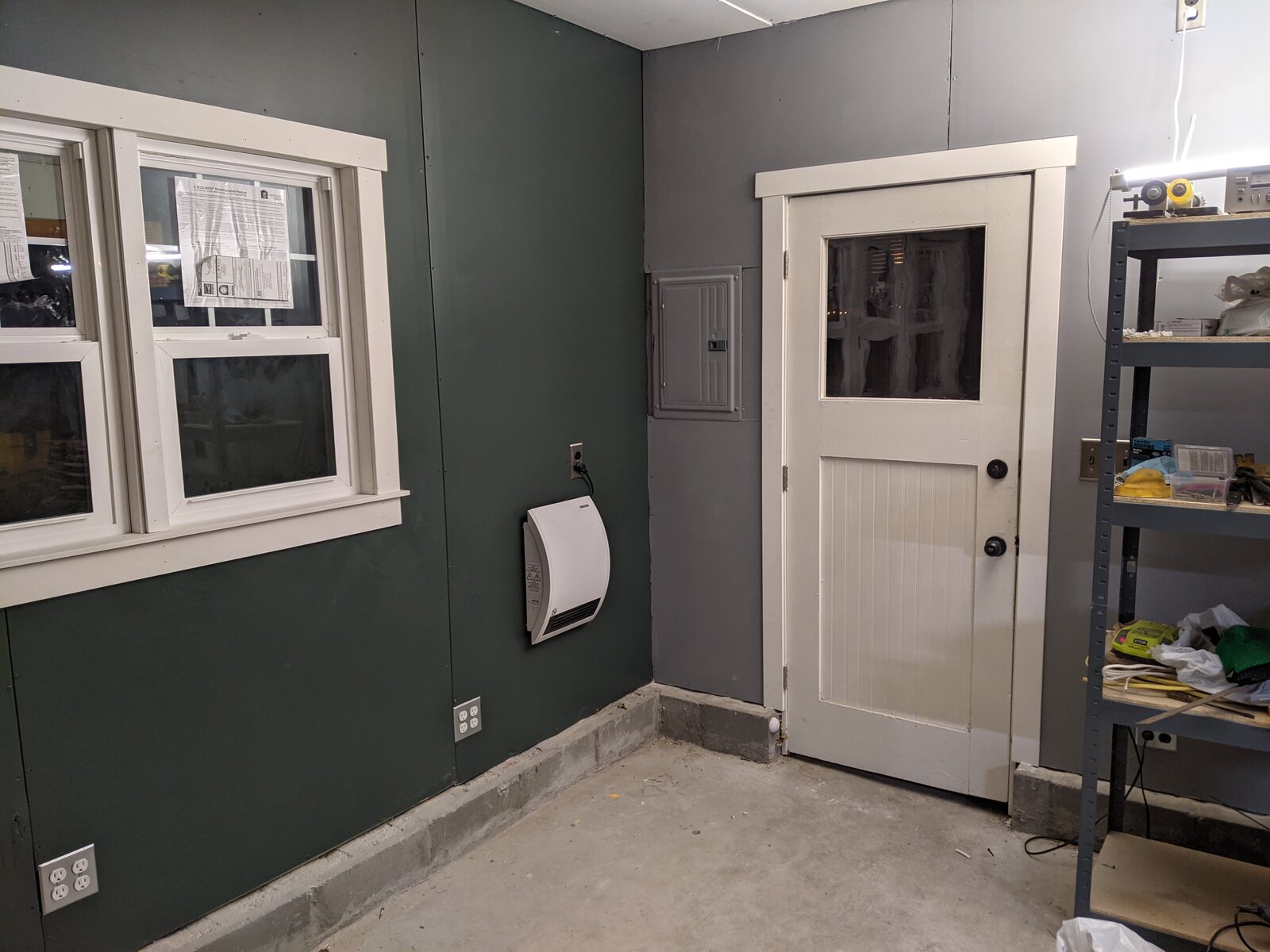 The little white thing on the wall is a spacer heater, its hooked up to its own 20amp outlet.
