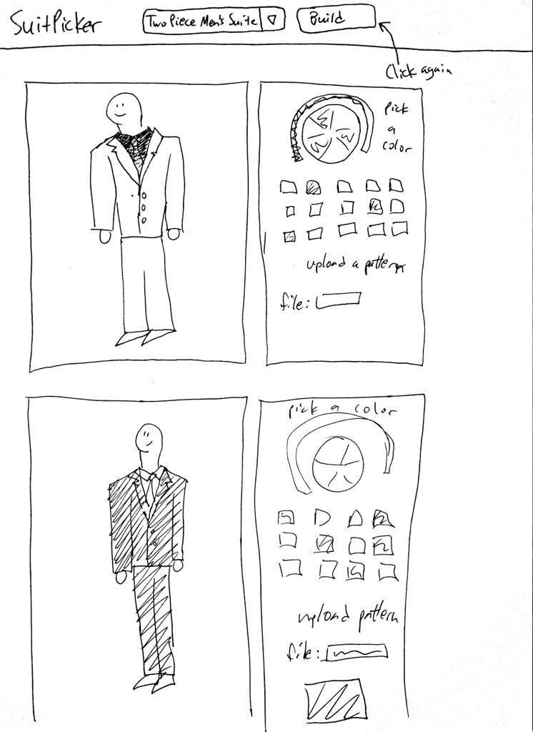 - Design men's suits by choosing the color/pattern for the coat, shirt, tie, etc.