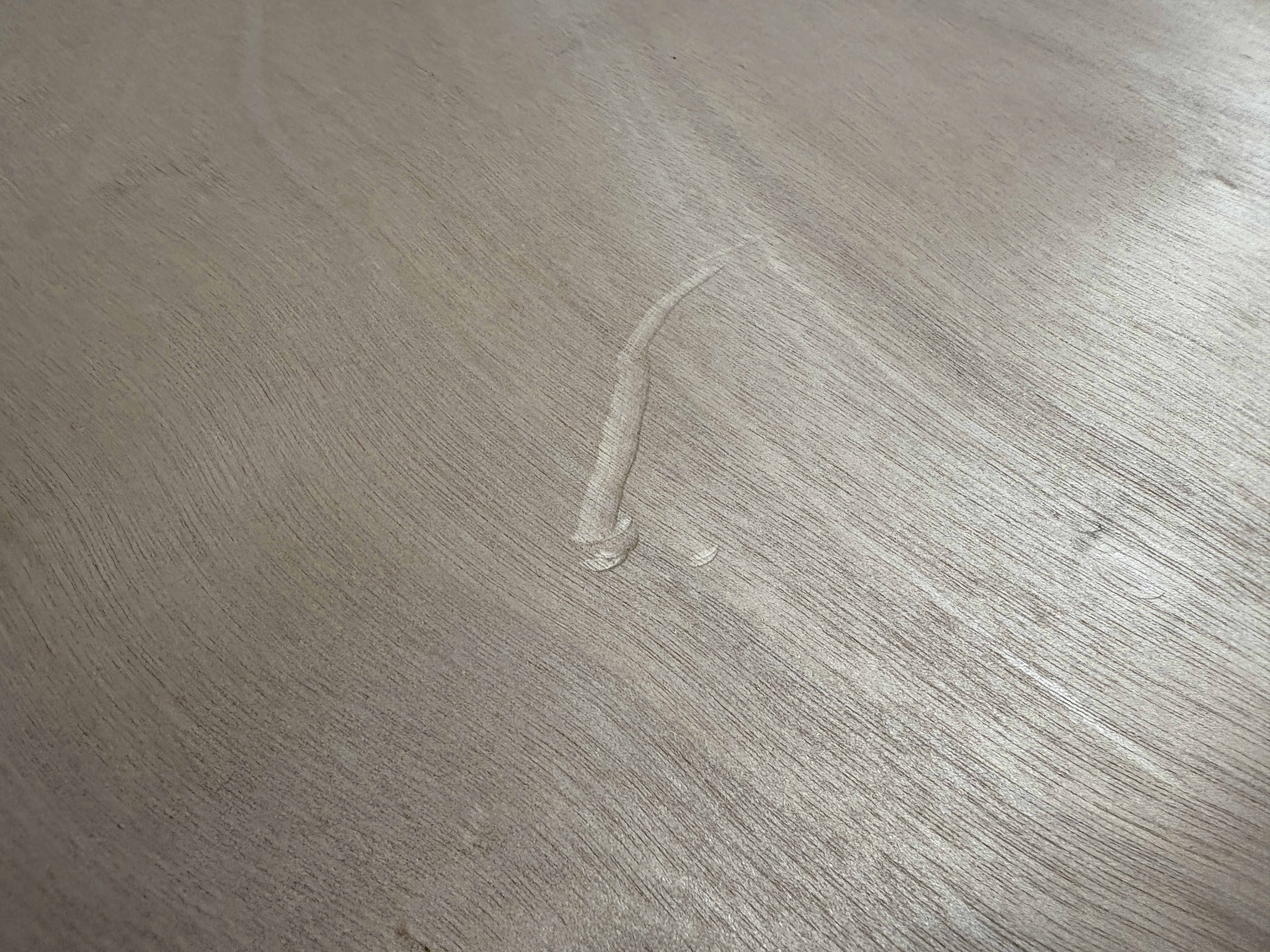 Another mistake was made, the table I had it on had a screw sticking up. You can see how soft this wood is! I was able to get this dent out with a steam cleaner machine, but it is lightly visible after staining it.