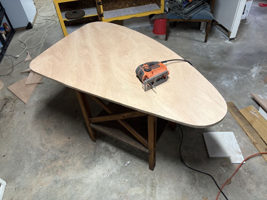 Here's the shape we want for the table, though I did modify it to be more rounded on the hypotenous of the triangle after taking this photo: